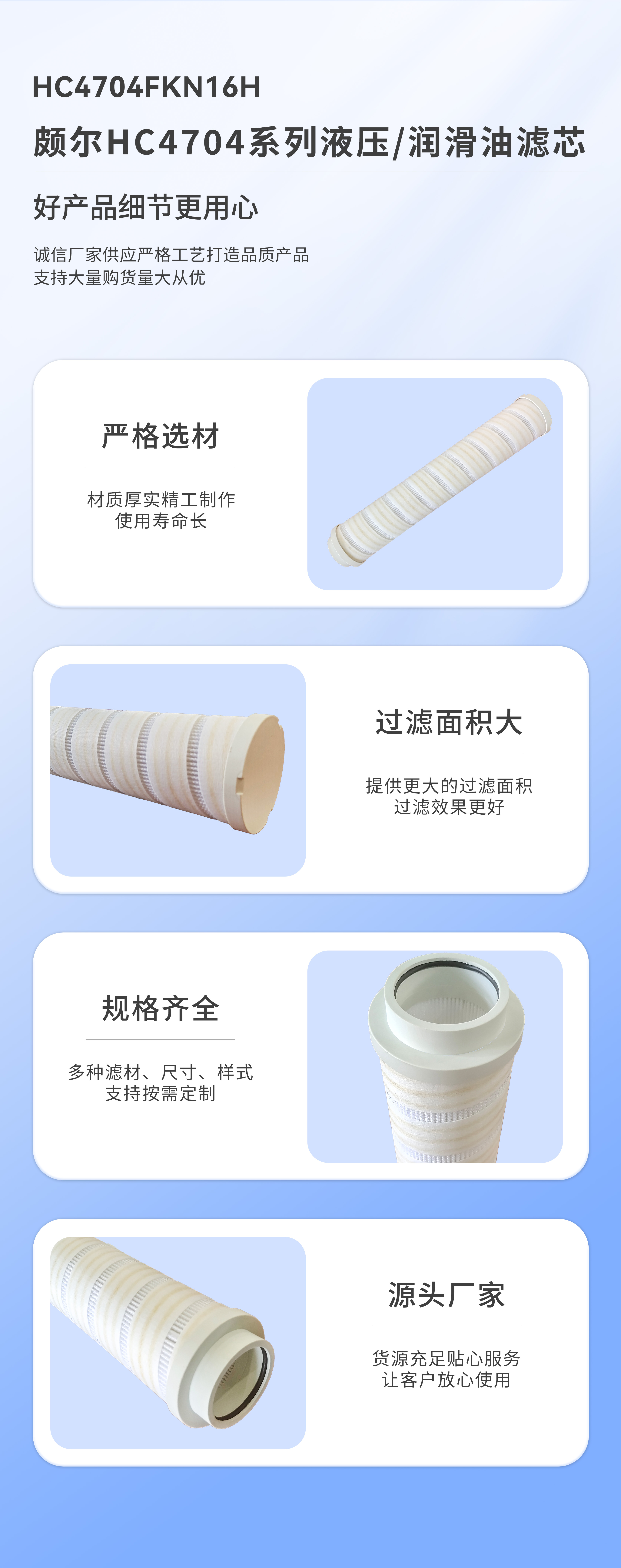 【產(chǎn)品簡介】:頗爾HC4704系列液壓潤滑油濾芯,過濾精度:6微米 過濾比β≥200 濾芯長度16英寸,密封圈材質(zhì):丁晴橡膠。
