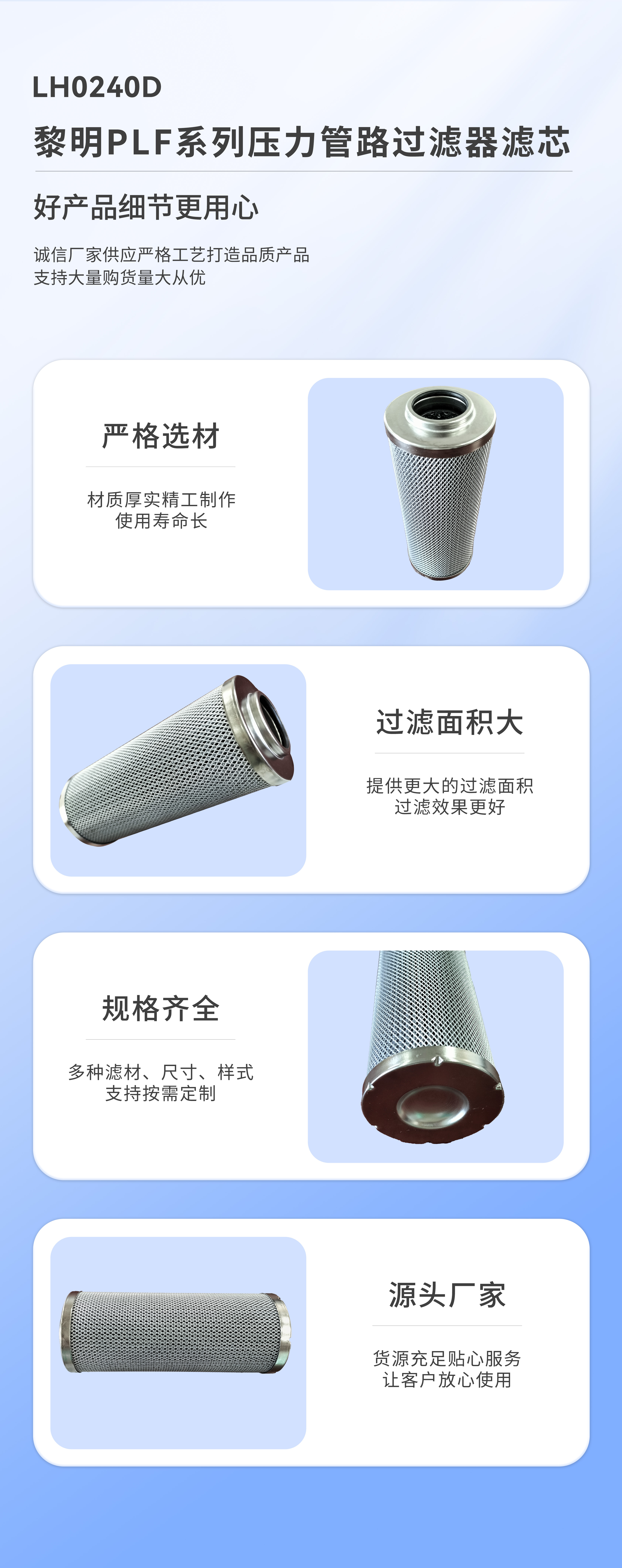 【產(chǎn)品簡介】:新鄉(xiāng)北方濾器供應(yīng)黎明PLF系列壓力管路過濾器濾芯,流量240L/min 精度:3/5/10/20微米可選。