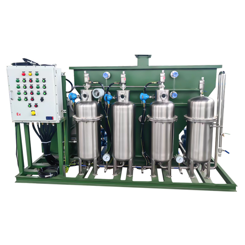 預過濾器能過濾水中的細小懸浮顆粒(10ym)以除去水中的雜志顆粒,防止以顆粒為核心而不能破乳除油,同時將水中的水包油進行破乳保護高效聚結(jié)分離器,延長其使用壽命。重力分離器利用流程長的特性,使細小的油粒充分接觸并逐漸長大并上浮,超過80%的油在這一級被聚集排出,只有很少量的細小油粒被輸送到很后一級-高效聚結(jié)分離器內(nèi),因此重力分離器能夠大大延了聚結(jié)濾芯的使用壽命。